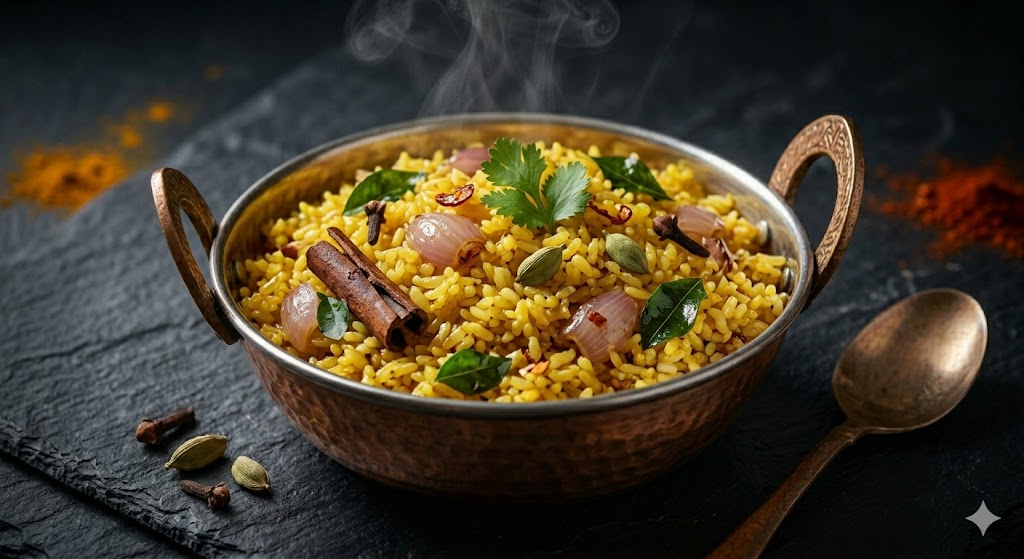 Sauté pearl rice tempered with shallots and flavored with cinnamon, cardamom, cloves ana finished with turmeric. This is an Island favourite dish